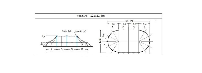 Velké Šapitó (12×21,4 m) – 40 000 Kč/3 dny včetně dopravy a montáže do 25 km od Prahy